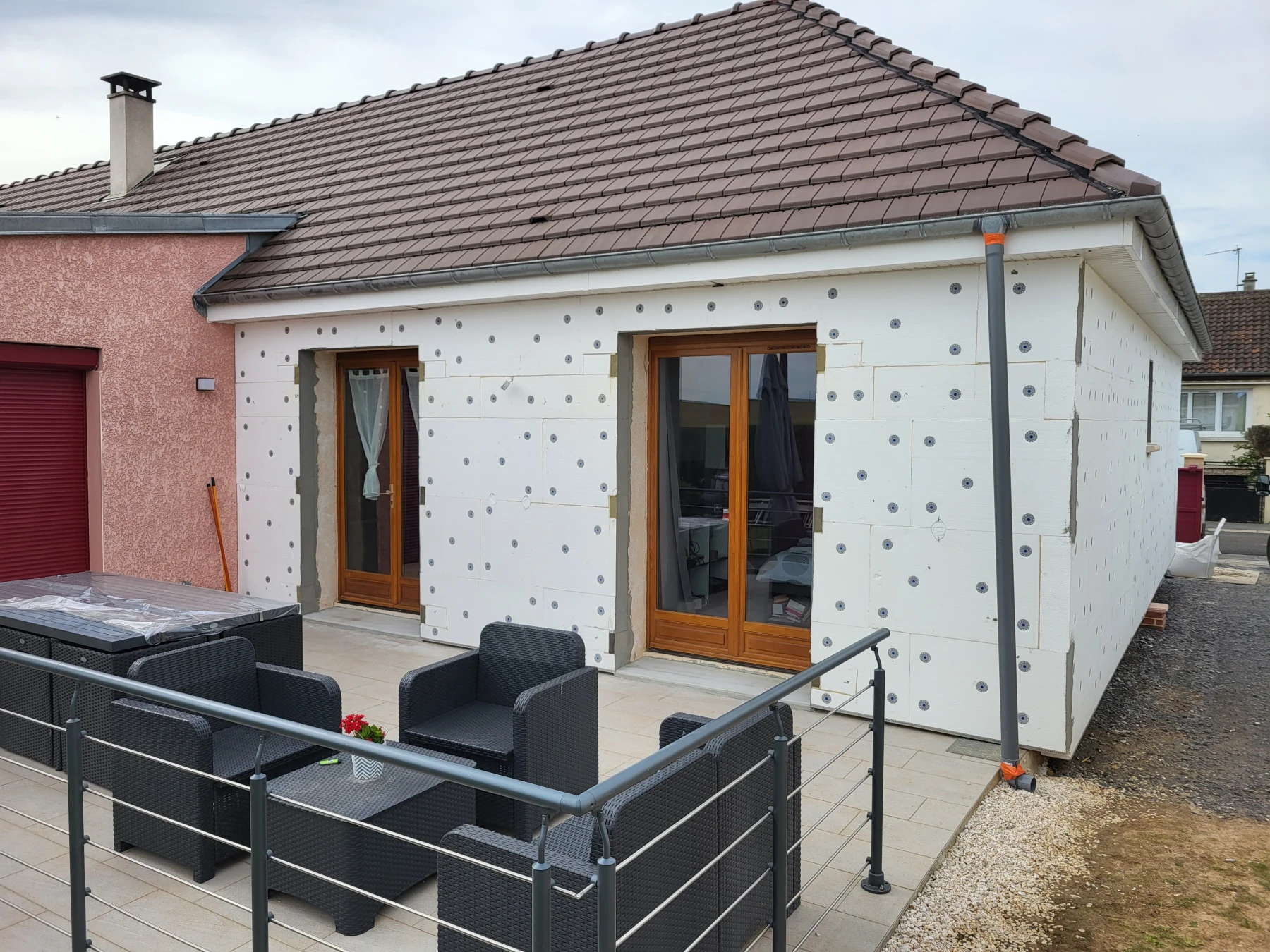 Isolation par l'extérieure d'une maison plein pieds et ravalement de la façade