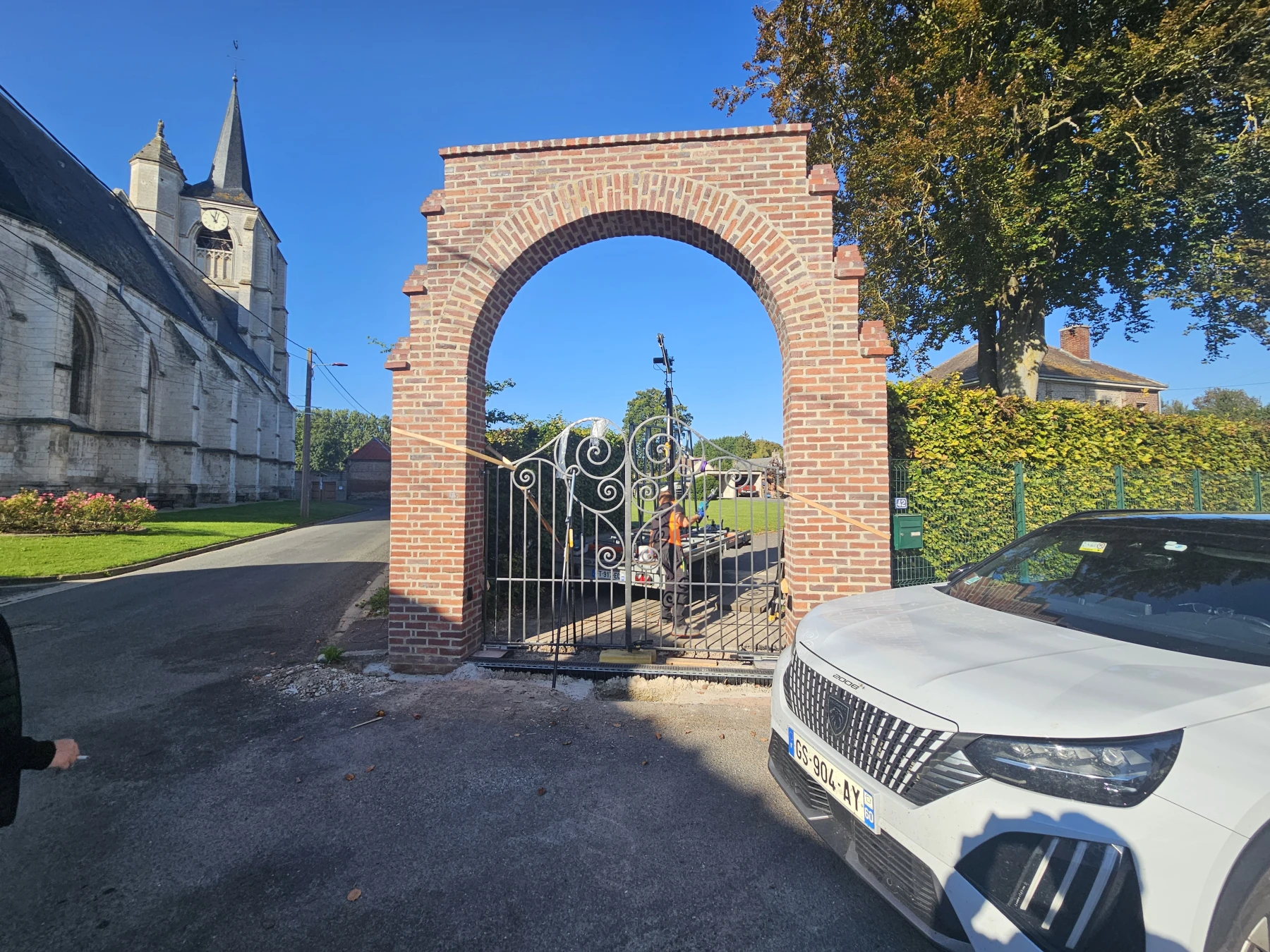 La société SARL SP-DA est intervenue sur un chantier de reconstruction de porche en briques à la suite d’un choc de véhicule ayant fortement endommagé la structure existante.